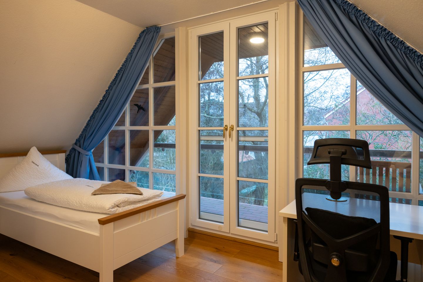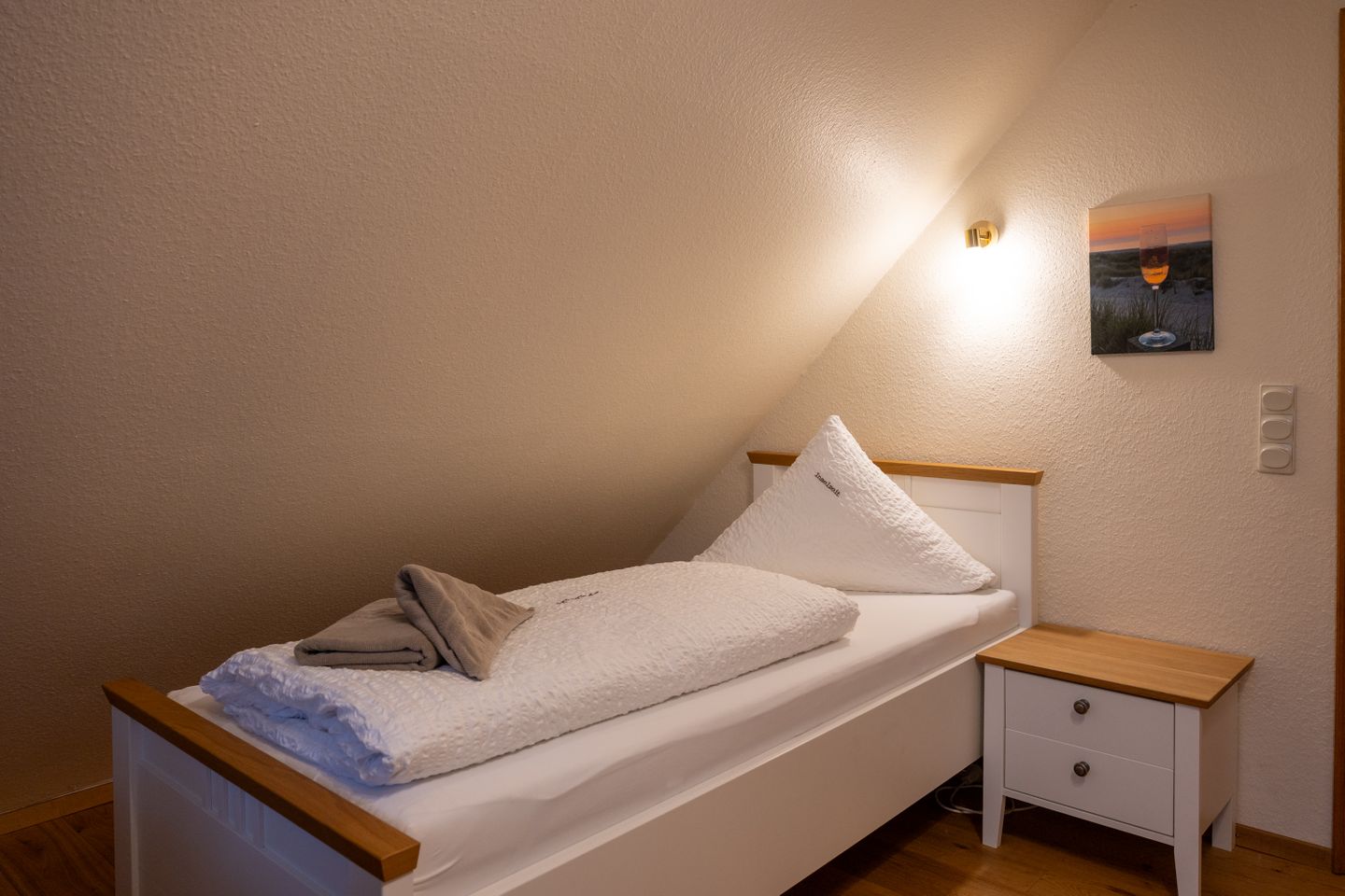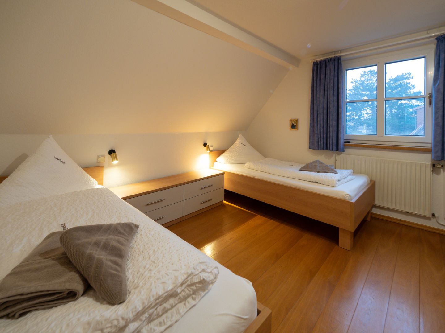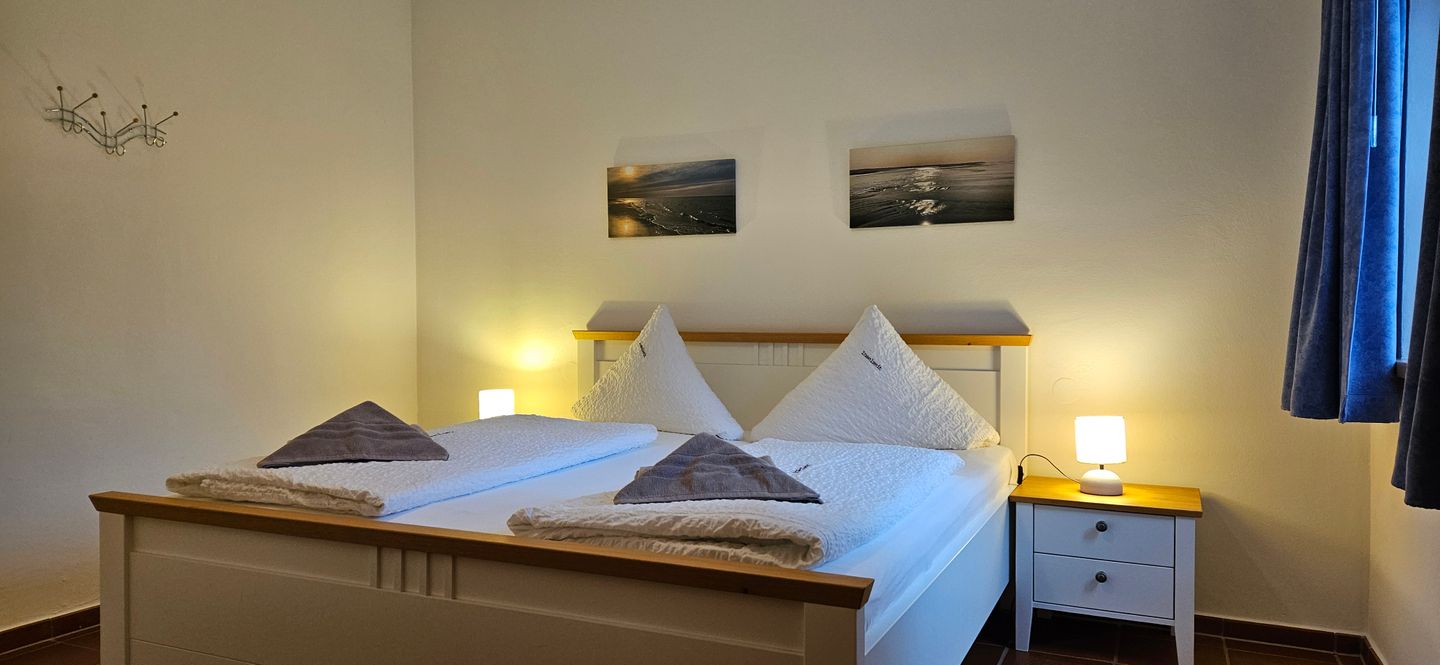 Für Familien bestechen besonders die zahlreichen Details: Auf der Terrasse lädt ein Strandkorb zum Entspannen ein, und ein Bollerwagen erleichtert Ausflüge zum nahen Strand, der in etwa 1.200 Metern zu Fuß erreichbar ist. Im Außenbereich erwartet Sie außerdem eine gepflegte Terrasse, die zu ausgedehnten Stunden im Freien einlädt. Die Ausstattung wird durch Fliegengitter, Waschmaschine und Trockner für maximalen Komfort ergänzt. WLAN steht im gesamten Haus kostenfrei zur Verfügung, sodass Sie auch während Ihres Inselaufenthaltes flexibel bleiben.